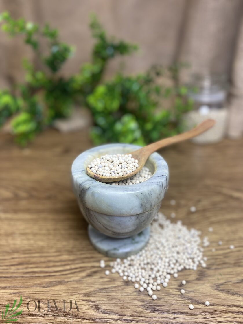 Baltasis pipiras – tai viena iš pipirų rūšių, kilusi iš Piper nigrum augalo, kurio vaisiai dažnai naudojami kaip prieskoniai. SAVYBĖS: Baltieji pipirai gaunami nuimant juodųjų pipirų uogas, po to jų apvalkalas pašalinamas, o viduje lieka tik baltas sėklos branduolys. Šis procesas suteikia baltiesiems pipirams švelnesnį ir subtilesnį skonį, palyginti su juodaisiais pipirais, kurie dažnai būna aštresni ir intensyvesni. Esantis piperinas veikia kaip stiprus antiokstidantas, kuris gali padėti apsaugoti mūsų ląsteles nuo aplinkos daromo žalingo poveikio. PANAUDOJIMO GALIMYBĖS: rekomenduojama pipirais gardinti jau paruoštus gaminius ir tik šviežiai maltais , nes jie turi savybę nugaruoti. Dažniausiai naudojami mėsai, žuviai, troškinimas gardinti, tinka marinavimui, desertams ir sveikatinimuisi. Jūsų pageidavimu žirnelius galime sumalti, tokiu būdu Jus pasieks itin šviežūs, nenugaravę kvapnūs malti pipiriukai ! Kilmės šalis: Ne Vietnamas Kiekis: 90 g.