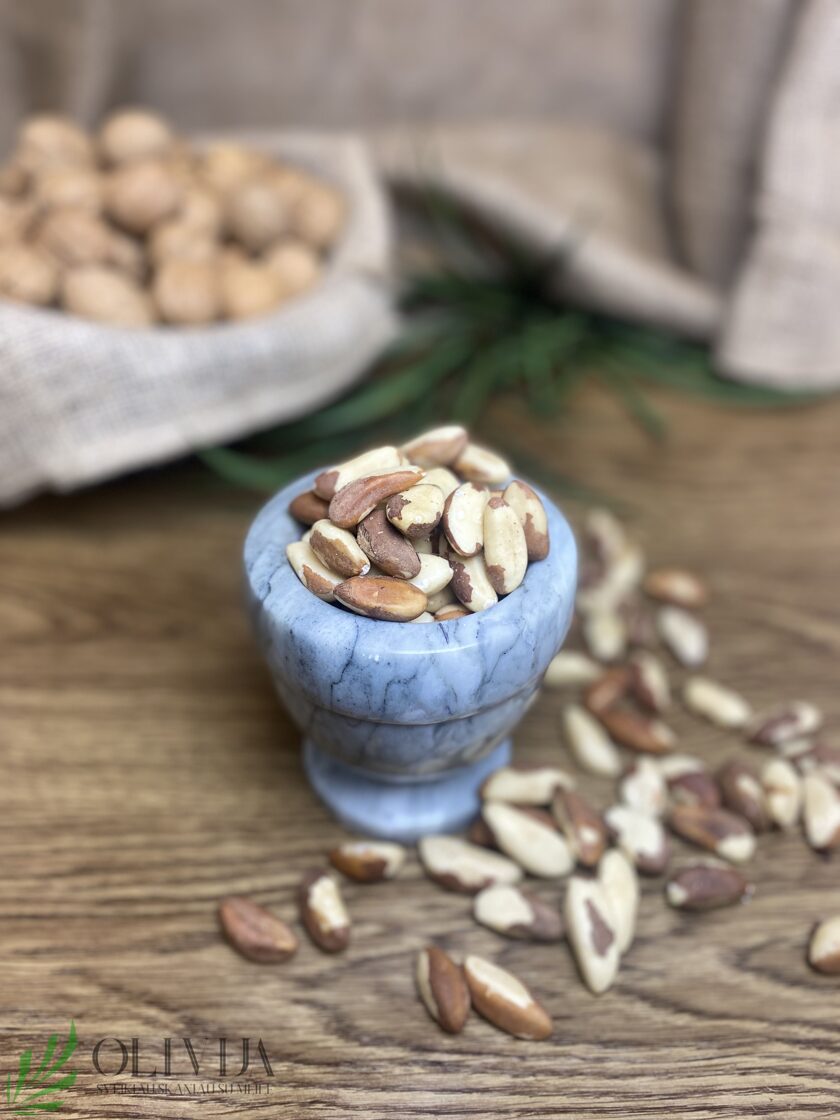 BERTOLETIJOS RIEŠUTAI – traškūs, riebūs ir sotūs ypatingo skonio dideli riešutai, kurie ne tik praturtins jūsų kasdieninę mitybą, bet ir aprūpins reikalingomis medžiagomis. SAVYBĖS: prisideda prie imuniteto stiprinimo, o sudėtyje esantis selenas padeda palaikyti skydliaukės funkciją ir apsaugo nuo širdies bei kraujagyslių ligų, taip pat gerina nuotaiką. G ausūs baltymų, ląstelienos, seleno, kalcio, magnio, kalio ir riebiųjų rūgščių, kas gali padėti mažinti cholesterolio kiekį kraujyje, tinka vartoti esant aukštam krujo spaudimui. PANAUDOJIMO GALIMYBĖS: salotoms, kulinarijoje, košėms, varškei, kokteiliams, daržovėms, ledams gardinti, užtepėlėms, granolai ruošti, ar vartoti vienus kaip svekesnį užkandį. DŽIOVINTUOSE VAISIUOSE, RIEŠUTUOESE AR UOGOSE mikroelementų koncentracija palyginti su šviežiais, yra keliskart didesnė, nes, kad gautume tiek pat mineralinių medžiagų, šviežių vaisių reikėtų suvalgyti net kelis kilogramus, todėl džiovinti, vaisiai, uogos – geras pasirinkimas norint praturtinti mitybą vitaminais. Džiovinant vaisius ir uogas išgaruoja vanduo, o visos kitos žmogui itin reikalingos medžiagos išlieka. Kilmės šalis: Peru