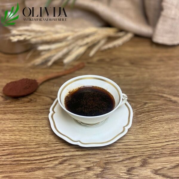 CIKORIJOS ŠAKNŲ KAVA  – atlernatyva kavos pupelėms, šiek tiek rūgštoto, riebaus, kartoko, stipraus poskonio, šiek tiek primenanti kavos skonį, o svarbiausia NAUDINGA sveikatai. SAVYBĖS:   neturi įtakos kraujospūdžiui saugi vartoti visiems šeimos nariams, gali skystinti kraują, sudėtyje turi inulino, todėl gali mažinti cukraus kiekį kraujyje, gali padėti kontroliuoti širdies ritmą, mažina cholesterolio kiekį kraujyje.  BE KOFEINO.  PANAUDOJIMO GALIMYBĖS: puikiai dera su pienu, taip pat su augaliniu, galima rinktis ir sausą kokoso pieną, riešutų ar kitą jums tinkamą. PARUOŠIMO BŪDAS: užpilti 1 a.š. verdančiu vandeniu 300 ml. ir palikti termose, bent pusvalandžiui, arba pavirinti keletą minučių. Idealiai dera kartu vartoti su cikorijos šaknų ar gilių kava, čaga grybu. Pagardinkite kakavos sviestu, cinamonu, kardamonu, gvaizdikėliais, muskato riešutu ir mėgaukitės KARALIŠKO SKONIO  sveikatai palankiu kavos gėrimu.   Kilmės šalis: Prancūzija Svoris: 150 g.