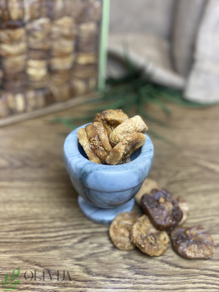 FIGOS džiovintos  – fikuso augalo valgomas, džiovintas vaisius, skonis gana saldus, priklauso nuo rūšies, turi daug mažų, valgomų sėklyčių, yra gana sočios, maistingos.  SAVYBĖS: nuo seno vartojamos esant vidurių užkietėjimui, veikia kaip prebiotikas, jose gausu antioksidantų , kalio, magnio, vitaminų A,B, C  gali padėti normalizuoti kraujo spaudimą, gerina virškinimą, stiprina kaulus. PANAUDOJIMO GALIMYBĖS: dažniausiai naudojamos desertams, košėms, glotnučiams, kokteiliams salotoms, užkandžiams ruošti ir puošti, taip pat vartojamos vienos kaip sotus sveikas užkandis. DŽIOVINTUOSE VAISIUOSE mikroelementų koncentracija palyginti su šviežiais, yra keliskart didesnė, nes, kad gautume tiek pat mineralinių medžiagų, šviežių vaisių reikėtų suvalgyti net kelis kilogramus, todėl džiovinti, vaisiai, uogos – geras pasirinkimas norint praturtinti mitybą vitaminais. Džiovinant vaisius ir uogas išgaruoja vanduo, o visos kitos žmogui itin reikalingos medžiagos išlieka. Rekomenduojame visus vaisius ir riešutus prieš vartojimą nuplauti šiltame vandenyje. Kilmės šalis: Turkija