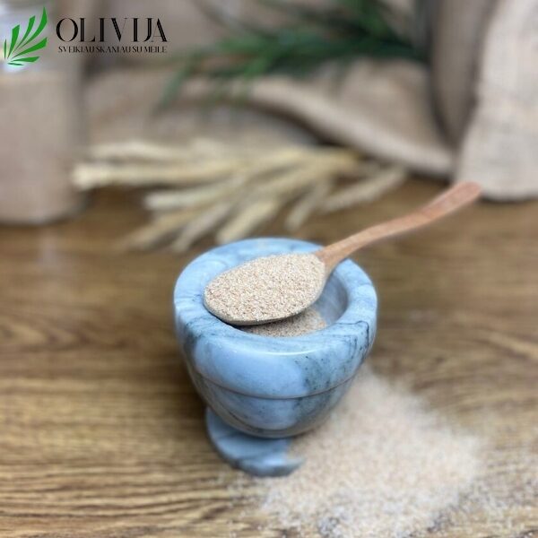GYSLOČIO LUOBELĖS – gaunamos iš (Plantago psyllium) sėklų, kurios dažnai naudojamos kaip maistingas priedas ir natūralus skaidulų šaltinis. Jos turi keletą naudingų savybių ir yra žinomos dėl savo sveikatingumo naudų. SAVYBĖS: gausios tirpių skaidulų, kurios padeda reguliuoti virškinimą ir gali pagerinti žarnyno sveikatą.Jos padeda mažinti vidurių užkietėjimą, skatina reguliarius tuštinimus ir gali palengvinti dirgliosios žarnos sindromo simptomus. Gysločio luobelės gali padėti sumažinti cholesterolio kiekį kraujyje, o tai prisideda prie širdies sveikatos. Dėl didelio skaidulų kiekio, gysločio luobelės gali suteikti sotumo jausmą, taip padedančios valdyti apetitą. PANAUDOJIMO GALIMYBĖS: naudojamos kaip jogurto, smoothie, avižinių dribsnių ar kepinių maistingas priedas. Jos gali būti naudojamos kaip tirštiklis sriuboms ar padažams, kokteiliams. Jas galima sumaišyti su vandeniu ar sultimis ir gerti kaip sveikatinimo gėrimą. Gysločio luobelės taip pat gali būti naudojamos natūraliuose odos priežiūros produktuose dėl savo drėkinamųjų savybių. Kilmės šalis: Indija Svoris: 100 g.