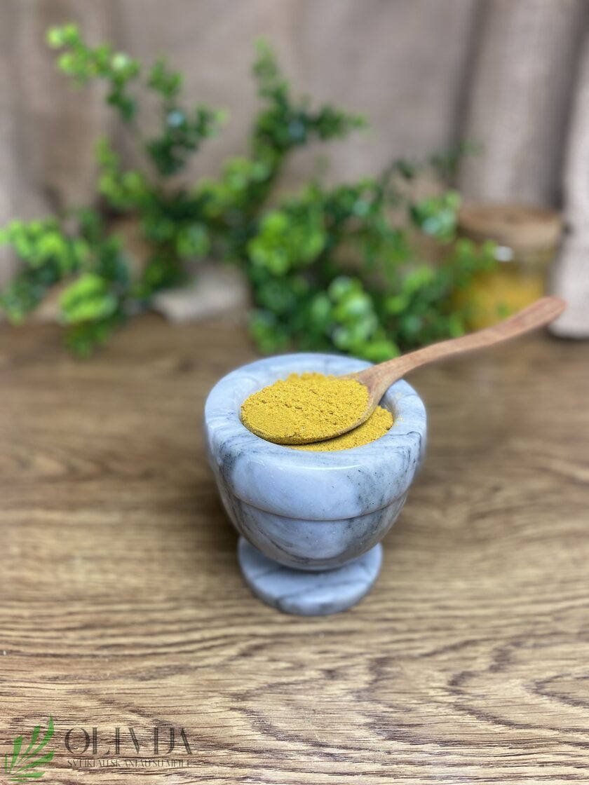 KARIS BE DRUSKOS – prieskonių mišinys, kurio pagrindas yra ciberžolės šaknis, itin populiarus Indijoje, Azijoje. Mėgaukitės išskirtiniu skoniu ir aromatu kuriam abejingų neliks ! SUDĖTIS: ciberžolės, kalendros, ožragės, garstyčios, petražolės, imbierai, aitrios paprikos (čili), juodieji pipirai, gvazdikėliai. PANAUDOJIMO GALIMYBĖS: naudojamas labai plačiai, tinka žuvies, mėsos, daržovių patiekalams, troškiniams, sriuboms, makaronams, ryžiams, guliašui gardinti. Kilmės šalis: Ne ES Šalys Kiekis : 120 g.