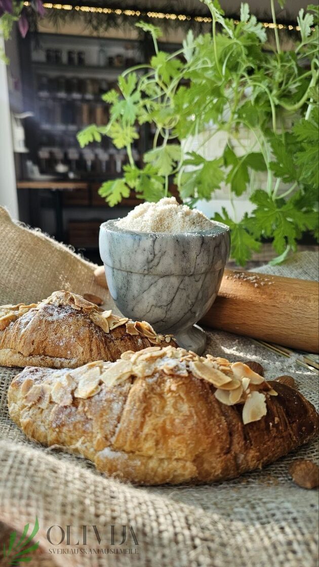 MIGDOLŲ miltai – išgaunami iš migdolų riešutų, jie turi daugybę naudingų savybių, todėl dažnai naudojami tiek kulinarijoje, tiek mityboje. SAVYBĖS: puikus augalinio baltymo šaltinis, padedantis palaikyti raumenų masę ir sveikatą. Jie turi daug skaidulų, kurios padeda gerinti virškinimą ir palaikyti žarnyno sveikatą. Migdolų miltai yra turtingi mononesočiųjų riebalų, kurie gali padėti palaikyti širdies sveikatą. Juose yra vitamino E, kalcio, magnio, kurie yra svarbūs bendram organizmo funkcionavimui. Migdolų miltai yra puiki alternatyva glitimui, todėl jie dažnai naudojami be glitimo dietose ir gali būti naudingi žmonėms, sergantiems celiakija. Dėl didelio baltymų ir skaidulų kiekio migdolų miltai gali padėti jaustis sotiems ilgiau. PANAUDOJIMO GALIMYBĖS: puikiai tinka glitimo neturintiems kepiniams gaminti. Migdolų miltai gali būti naudojami blynams ir vafliams, suteikiant jiems unikalų skonį ir tekstūrą. Jie gali būti naudojami kaip paniravimo mišinys daržovėms arba mėsa, suteikiant traškumą. Galima naudoti kokteiliams, matchai, kavai, kad padinti baltymų kiekį ir suteikti kremiškumo. Migdolų miltai gali būti naudojami granoloje arba sveikuose užkandžiuose, kad suteiktų papildomų maistingųjų medžiagų. Kilmės šalis: Ispanija