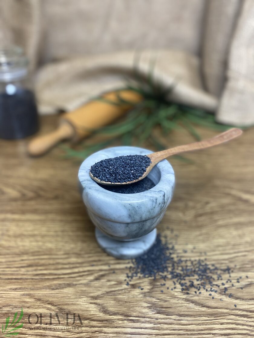 SEZAMO sėklos juodos  – (Sesamum indicum) yra populiarus maisto ingredientas, turintis ne tik unikalų skonį, bet ir daug naudingų savybių. SAVYBĖS:   gausus baltymų, sveikų riebalų, vitaminų (ypač E ir B grupės) bei mineralų (pvz., kalcio, magnio, geležies). Jame gausu antioksidantų, kurie padeda kovoti su oksidaciniu stresu ir mažina lėtinių ligų riziką. Tyrimai rodo, kad juodasis sezamas gali padėti sumažinti kraujospūdį ir palaikyti širdies sveikatą, turi skaidulų, kurios gerina virškinimą ir palaiko sveiką žarnyno mikroflorą. Jame yra kalcio, kuris yra esminis mineralas kaulams stiprinti ir išlaikyti jų tankį. Taip pat turi magnio, kuris padeda reguliuoti kalcio kiekį organizme, prisideda prie kaulų formavimo ir sveikatos, esantys vitaminai  K ir D yra svarbūs kaulų metabolizmui ir gali padėti užkirsti kelią osteoporozei. PANAUDOJIMO GALIMYBĖS:   naudojamas kaip prieskonis įvairiuose patiekaluose, salotose, troškiniuose ar kepiniuose. Jis puikiai dera su daržovėmis, ryžiais, makaronais ir kt. Iš juodojo sezamo galima gaminti tahini – sezamų pastą, kuri naudojama kaip padažas ar priedas.Juodasis sezamas gali būti naudojamas desertuose, pavyzdžiui, kaip papildymas pyragams, ledams ar šaldytoms žolelėms.Jis puikiai tinka pabarstyti ant įvairių patiekalų, kad pridėtų skonio ir tekstūros. Kilmės šalis:Bolivija