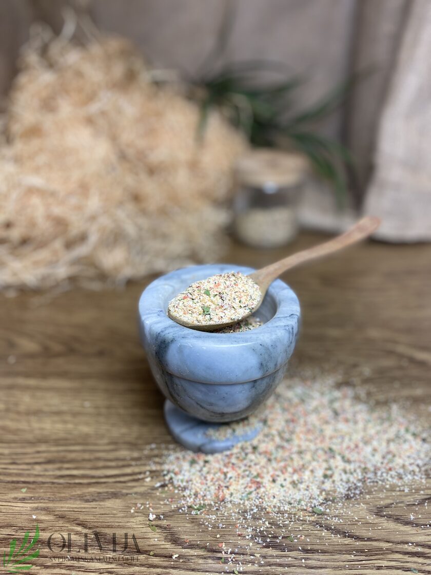 SU CITRINOS GRANULĖMIS – rinktinis prieskonių mišinys, unikslaus skonio, su lengva citrinos rūgštele. SUDĖTIS: Svogūnai, česnakai, morkos, saldioji raudona paprika, juodieji pipirai, citrinų žievelės 3.5 %, petražolės, citrinų rūgštis. PANAUDOJIMO GALIMYBĖS: puikiai tinka žuvies patiekalams, taip pat šviesiai mėsai bei salotoms gardinti. Kilmės šalis: Lietuva